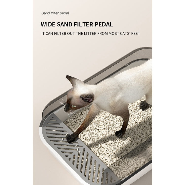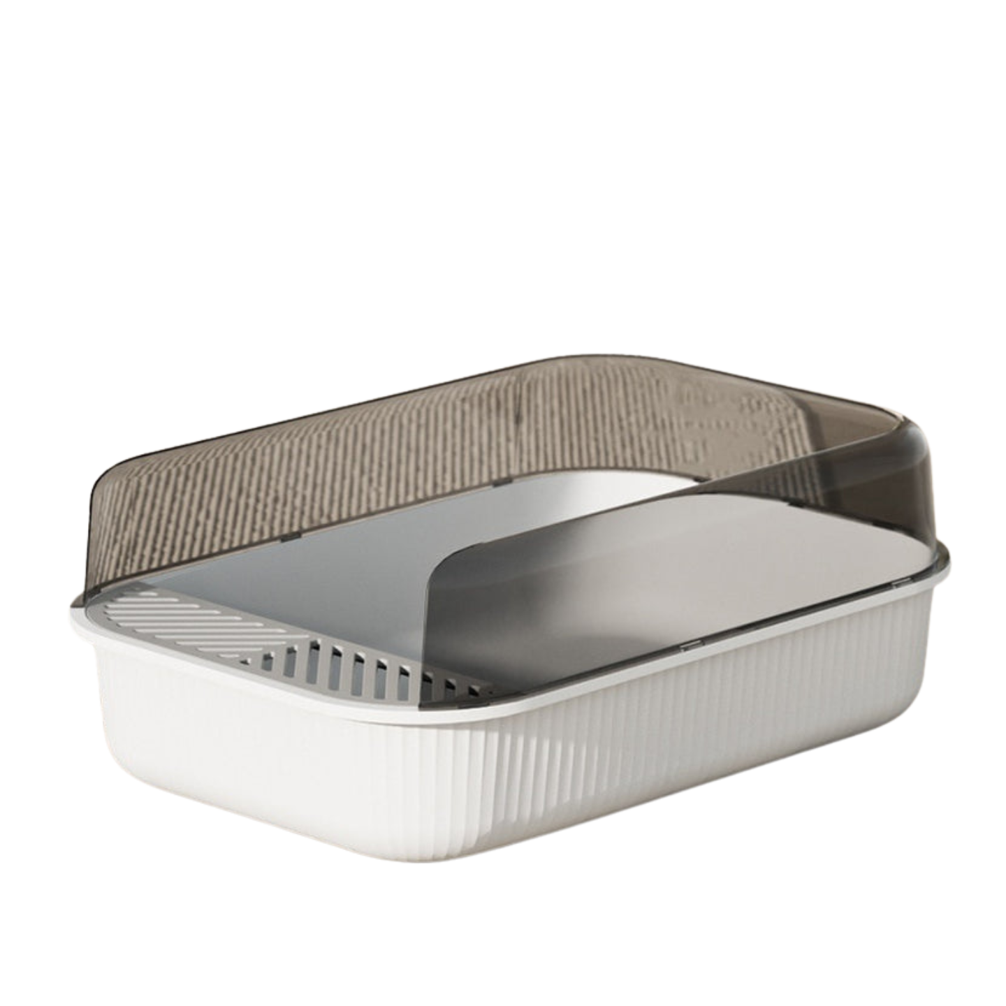 The Semi-Enclosed Litter Box offers a spacious 50.5cm (L) x 34.5cm (W) x 18.5cm (H) size for your cat's comfort. With a semi-enclosed design, it provides privacy while minimizing litter tracking. Keep your home clean and your cat content with this expertly designed litter box.